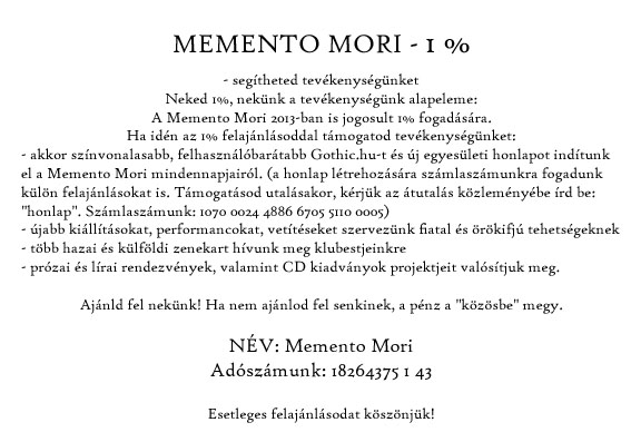 * MEMENTO MORI minifeszt hazai és külföldi underground zenekarok közreműködésével szervezett rendezvény.